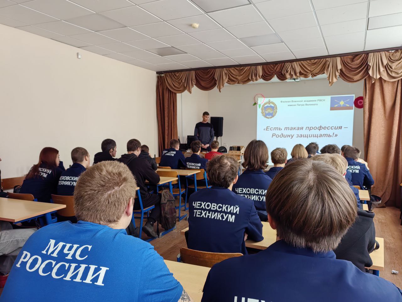 Урок мужества в Чеховском техникуме: "Есть такая профессия – Родину защищать!" 14 октября в структурном подразделении №4 Чеховского техникума состоялся урок мужества, ориентированный на выпускников и посвященный важной теме – выбору профессии защитника Родины. Мероприятие провел Белоножко Максим Григорьевич, преподаватель Военной Академии РВСН имени Петра Великого (филиал в г. Серпухов МО). Его визит предоставил студентам уникальную возможность узнать о службе в Вооруженных Силах Российской Федерации из первых уст, непосредственно от представителя военной академии. В ходе встречи Максим Григорьевич увлеченно рассказал о профессии военного, подчеркнув ее значимость для безопасности и благополучия страны. Он подробно описал обязанности офицеров, стоящие перед ними задачи, а также качества, необходимые для успешной карьеры в этой ответственной сфере. Студенты услышали истории из личного опыта преподавателя, увидели примеры мужества и героизма из истории России, и прониклись важностью таких ценностей, как патриотизм, дисциплина и преданность Родине. Кульминацией урока стала презентация Военной Академии РВСН имени Петра Великого. Максим Григорьевич детально рассказал о преимуществах обучения в академии, о тех знаниях и навыках, которые приобретают курсанты, и о перспективах карьерного роста, открывающихся перед выпускниками. Он подчеркнул, что академия готовит высококвалифицированных специалистов, способных эффективно решать сложные задачи в сфере обороны страны. Урок мужества вызвал большой интерес у выпускников Чеховского техникума. Многие студенты серьезно задумались о возможности связать свою жизнь с военной службой. Возможно, эта встреча станет определяющей для будущих офицеров, готовых посвятить себя служению Отечеству. Администрация Чеховского техникума выражает искреннюю благодарность Максиму Григорьевичу Белоножко за содержательный и вдохновляющий урок мужества, и надеется на дальнейшее плодотворное сотрудничество!