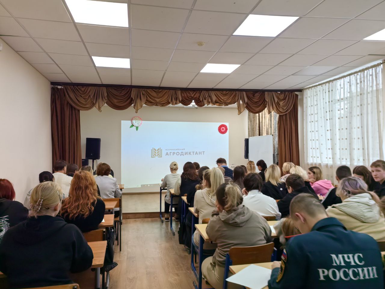 С 8 по 12 октября вся Россия пишет "Агродиктант"! Этот масштабный образовательный проект, организованный "Российским селом" ("Единая Россия") и Россельхозбанком, посвящен Дню работника сельского хозяйства и перерабатывающей промышленности. 10 октября студенты и преподаватели СП №4 Чеховского техникума (50 человек!) присоединились к акции и проверили свои аграрные знания! Студентка 2 курса (будущий пожарный) Дина Б. поделилась: "Было интересно испытать себя и узнать новое о сельском хозяйстве!" Участникам предстояло ответить на 30 вопросов разной сложности о растениеводстве, животноводстве, цифровизации АПК, экспорте, продовольственной безопасности и истории отрасли.