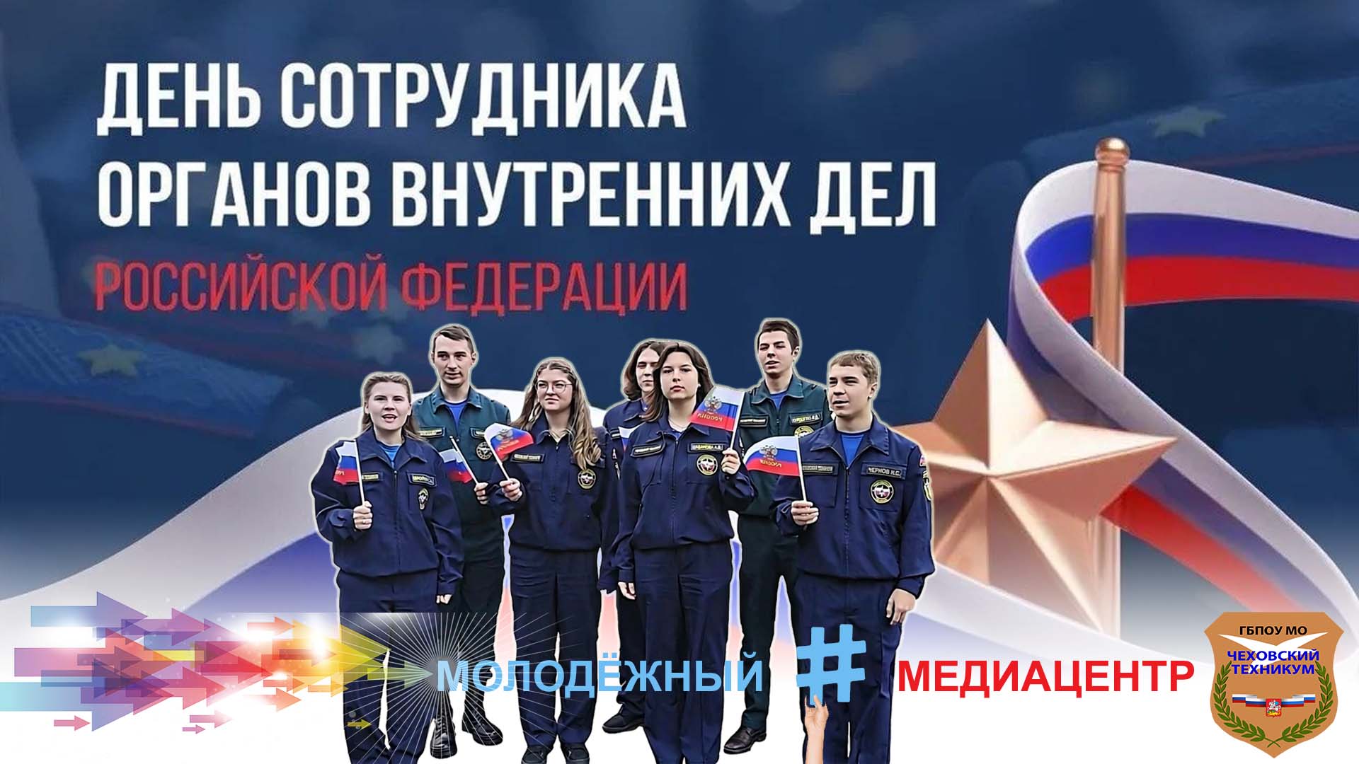 В рамках празднования Дня сотрудника органов внутренних дел Российской Федерации, Молодёжный медиацентр Чеховского техникума совместно со студентами-активистами Движения Первых Чеховского техникума подготовили поздравительный видеоролик. Эта инициатива – дань уважения тем, кто ежедневно стоит на страже правопорядка и безопасности граждан. Мы благодарим каждого сотрудника МВД за преданность делу, мужество и профессионализм. Приглашаем всех к просмотру нашего видеопоздравления!