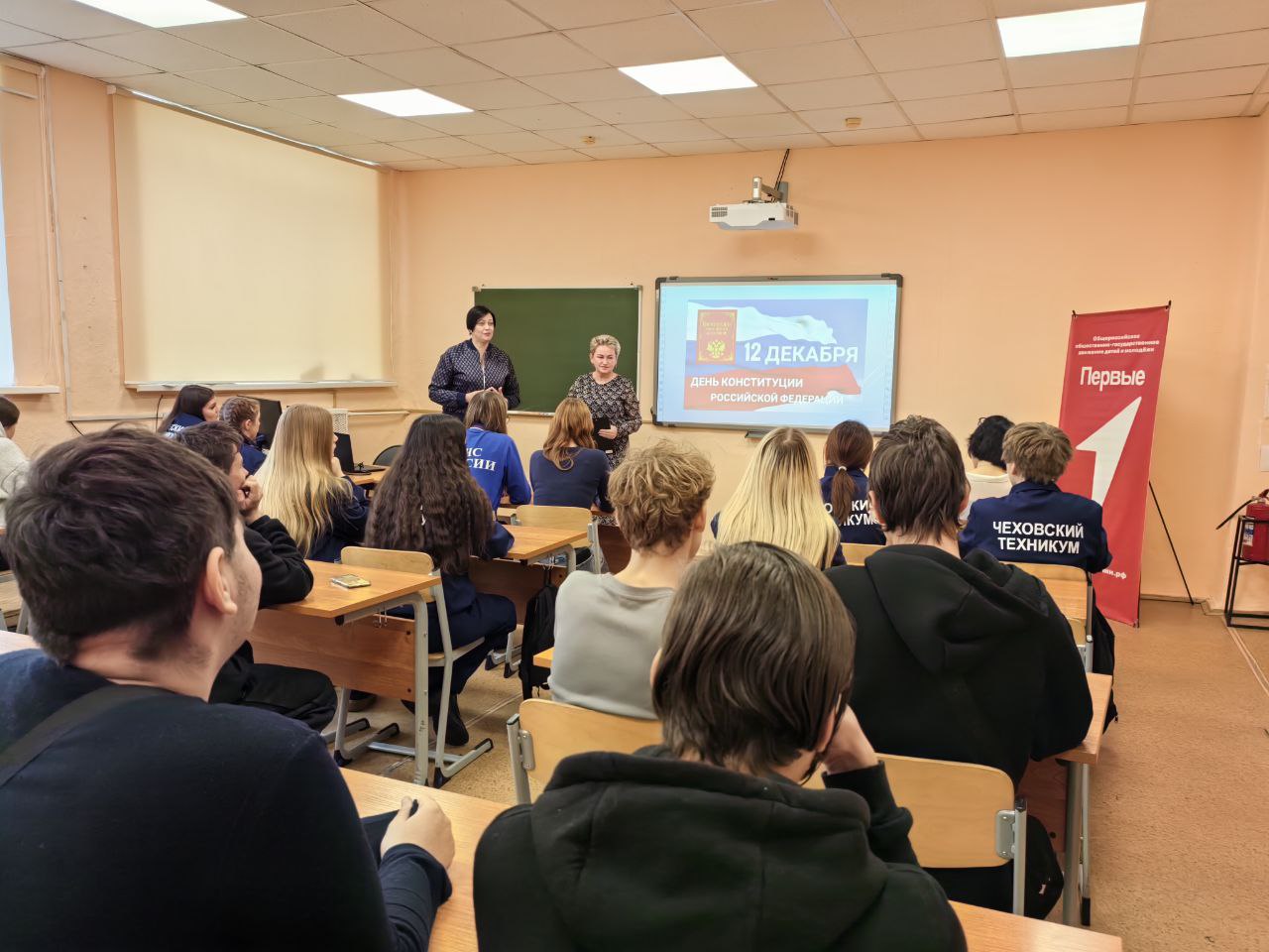 12 декабря — День Конституции Российской Федерации! В этот значимый день, отмечаемый ежегодно с 2005 года, в Чеховском техникуме прошел цикл мероприятий, посвященных основному закону нашей страны. Преподаватель Сгибнева Л.А. провела для студентов увлекательную интеллектуальную викторину, где ребята смогли проверить свои знания о Конституции. Также в техникум пришли специалисты по работе с молодежью из МЦ «Молодость», которые провели познавательную лекцию и интерактивную игру, посвященные Дню Конституции. Напомним, что 12 декабря 1993 года всенародным голосованием была принята Конституция Российской Федерации — основной закон, определяющий устройство государства, права, свободы и обязанности граждан. Эти мероприятия помогли студентам лучше понять значение Конституции и ее роль в жизни каждого из нас!