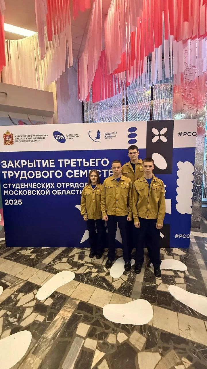 Студенты Чеховского техникума, являющиеся бойцами студенческих отрядов, приняли участие в Торжественном юбилейном закрытии трудового семестра студенческих отрядов Московской области! Это событие ознаменовало завершение 5-го трудового сезона! Студенты-бойцы, отдавшие частичку своего труда и времени на благо региона, собрались вместе, чтобы отметить свои достижения, поделиться яркими воспоминаниями и получить заслуженное признание. Это отличная возможность подвести итоги, отметить успехи и вдохновиться на новые свершения! Мы гордимся нашими студентами, которые активно участвуют в движении студенческих отрядов, проявляя инициативу, ответственность и командный дух!