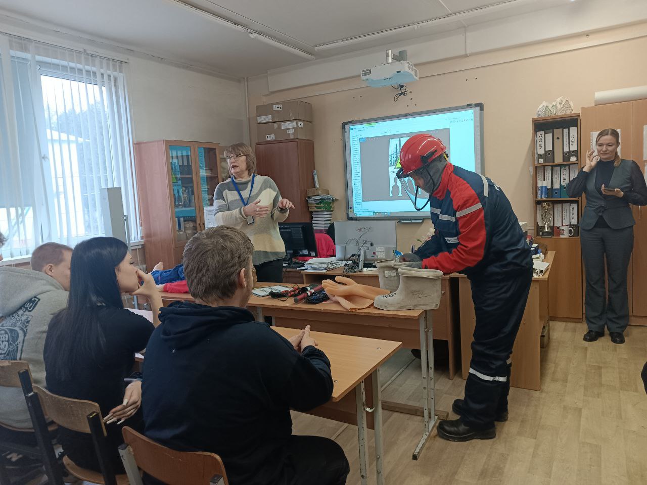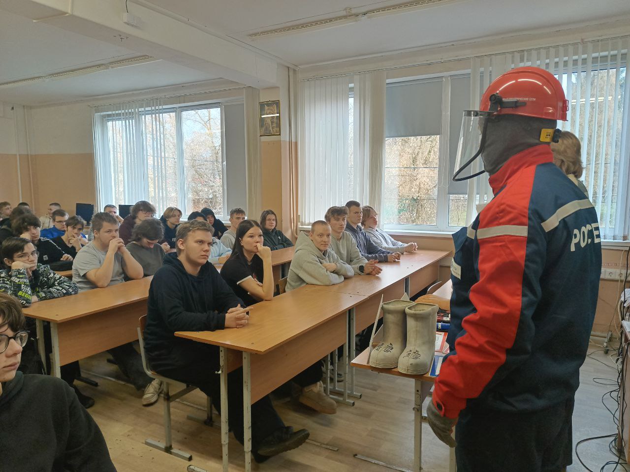 - Демонстрация профессионального оборудования. Оснащенность рабочих необходимым оборудованием демонстрирует серьезность подхода к вопросам безопасности и формирует правильное отношение студентов к своей будущей профессии. Подобные встречи помогают подготовить квалифицированных специалистов, готовых к безопасной и эффективной работе в сфере электроэнергетики.