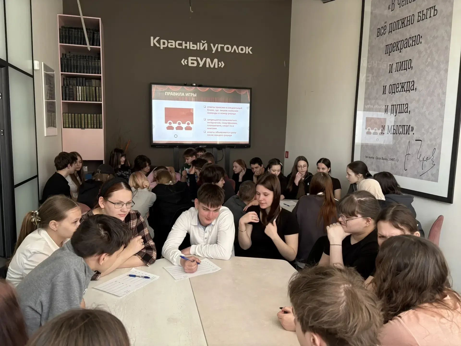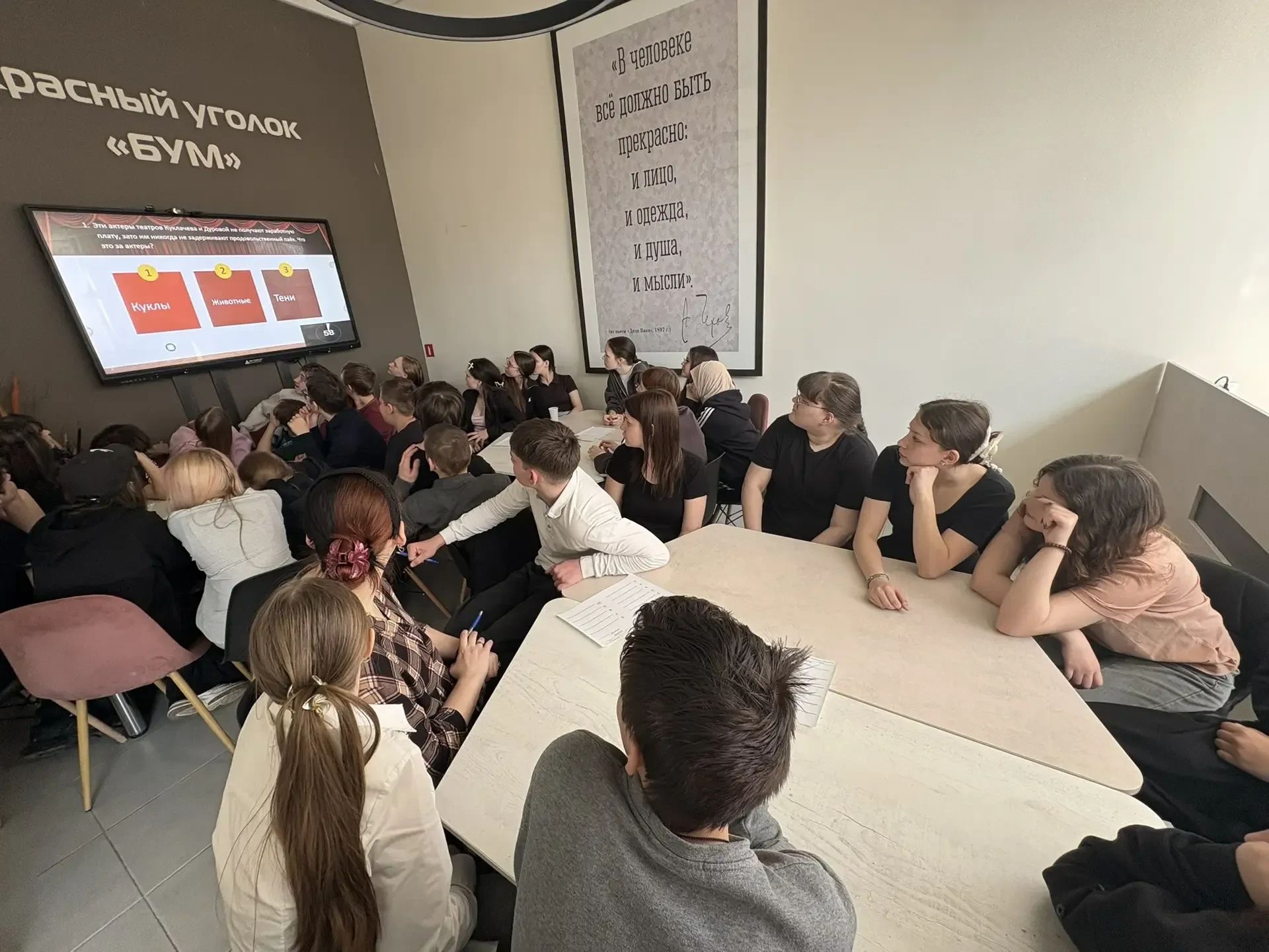 27 марта отмечается Всемирный день театра - это праздник всех театральных деятелей и ценителей зрелищного искусства. В канун праздника студенты ГБПОУ МО «Чеховский техникум» СП-2 приняли участие в КВИЗе «Волшебство за кулисами» в Центральной библиотеке г. Чехов. Ведущий библиотекарь по работе с молодежью Наталья Сергеевна Курчангина погрузила участников в сценическое искусство. Ребята проверили свою эрудицию, раскрыли тайны режиссёрских решений и почувствовали драйв настоящего театрального закулисья. В рамках КВИЗа также отвечали на вопросы по разным темам: от классических пьес до актуальных спектаклей. Также игра призвана испытать смекалку и командную слаженность, создать лёгкую и креативную атмосферу для ценителей искусства и дать новые открытия о мире театра за кадром сцены.