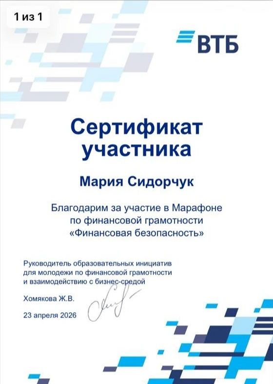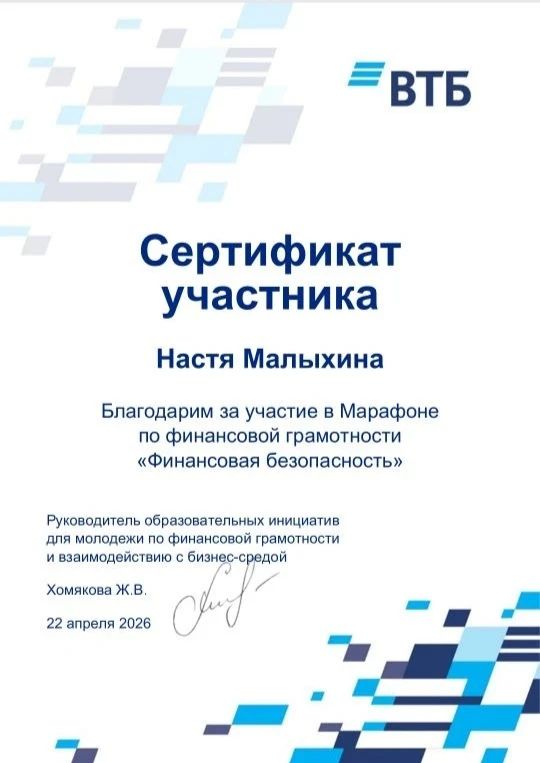 Студенты Чеховского техникума под руководством преподавателя Степашиной Надежды Николаевны приняли активное участие в марафоне по финансовой грамотности «Финансовая безопасность», организованном банком ВТБ. В рамках марафона ребята не только познакомились с основами управления личными финансами, но и узнали, как защитить себя от мошенников, грамотно планировать бюджет и принимать взвешенные финансовые решения. Особенно ценно, что все знания были поданы в интерактивном формате, с примерами из реальной жизни и практическими заданиями. Надежда Николаевна отмечает: «Финансовая грамотность сегодня — это не просто полезный навык, а необходимость. Я горжусь, что наши студенты проявили такой интерес к теме, задавали много вопросов и активно участвовали в обсуждениях. Уверена, что эти знания помогут им в будущем принимать правильные решения и строить своё благополучие!». Студенты тоже делятся впечатлениями: «Было очень интересно! Теперь я понимаю, как важно следить за своими финансами и не попадаться на уловки мошенников. Спасибо банку ВТБ и нашему преподавателю за такую возможность!» Мы гордимся нашими студентами и их стремлением к новым знаниям! Такие мероприятия — отличный пример сотрудничества образования и бизнеса на благо молодёжи.